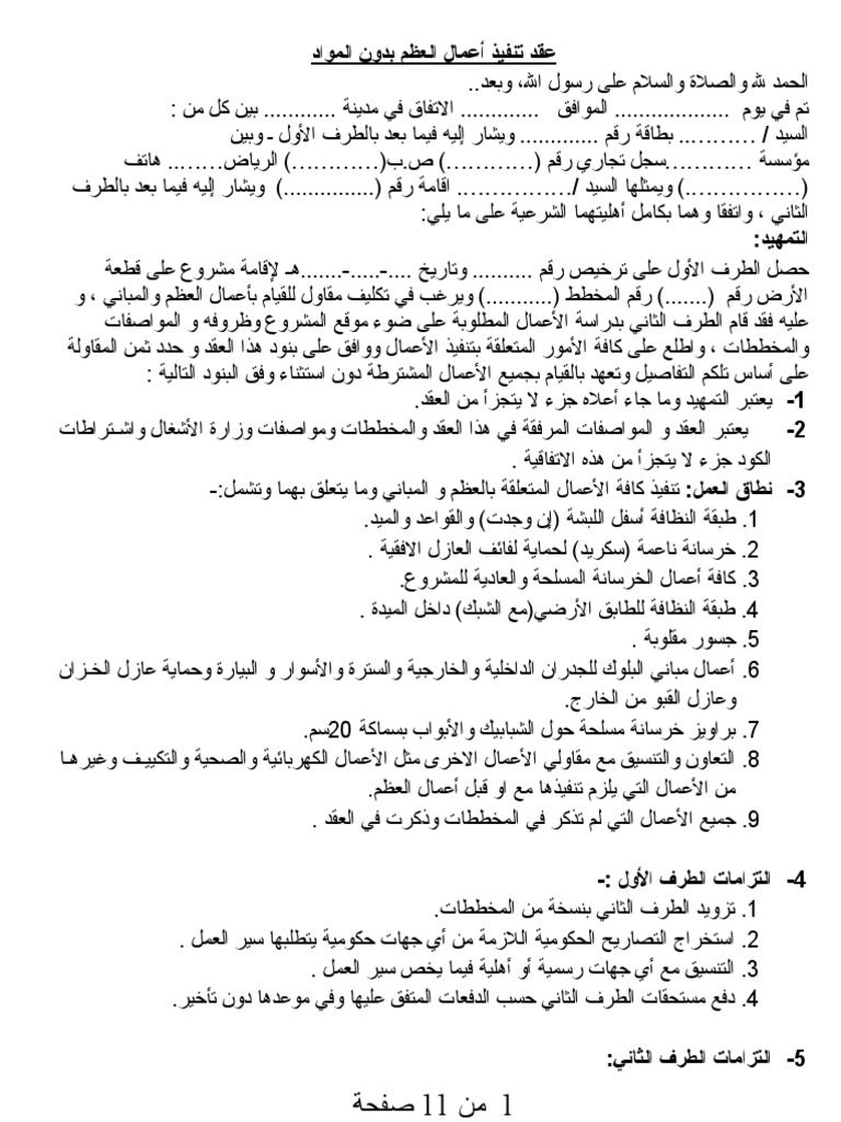 نموذج وصيغة عقد بناء عظم بدون مواد. في 10 09 2017 0 478 زيارة. نموذج عقد مقاولات بناء.