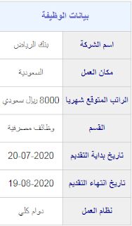 أعلن بنك الرياض توفر 4 وظائف إدارية شاغرة للرجال والنساء لحملة البكالوريوس للعمل بالبنك بمدينة الرياض بمسمى أخصائي موارد بشرية من خلال برنامج تمهير التدريب على رأس العمل وذلك وفقا لبقية التفاصيل الموضحة. وظائف بنك الراجحي نساء 1440 وظائف اليوم. Career day job opportunities riyad bank. إعرف أكثر عن الحياة والعمل في al rajhi bank careers.