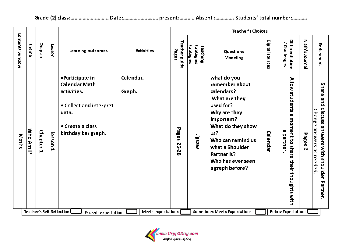 دفتر تحضير رياضيات كامل لجميع المراحل إلى كل معلمي ومعلمات الرياضيات بجميع المدارس وجميع المراحل التعليمية اليوم موعدنا معكم علي موقع مذكرات تعليمية ومع نموذج دفتر تحضير ممتاز جدا نقدمه لكم هدية بمناسبة العام. 3ـ ن يقرأ الطالب. 2ـ أن يذكر الطالب عقرب الدقائق. دفاتر تحضير الدروس جاهزة للطباعة في الرياضيات للثانى الإبتدائى ترم ثانى حتى درس 80 تحضير رياضيات تانية ابتدائى ترم ثانى كامل للفصل الدراسي الثاني 2019 2020 منهج جديد.