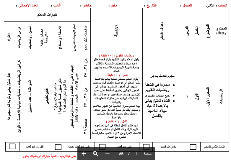 تحضير مادة الرياضيات للصف الثاني الابتدائي الفصل الثاني ف2 بصيغة pdf عرض مباشر بدون تحميل على موقع كتبي اونلاين نموذج من التحضير.