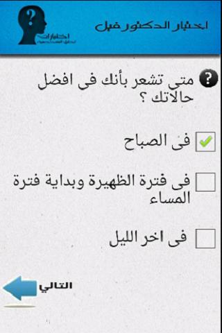 اختبارات شخصية في علم النفس من خلال الاسئلة. يتكون هذا الامتحان من 10 اسئلة ولكل اجابة عدد معين من النقاط بعد الانتهاء من اجابة الاسئلة يتم حساب النقاط ومن ثم تحليل الشخصية و الكشف عنها.