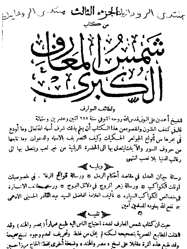 تحميل كتاب كتاب شمس المعارف الكبرى الجزء الثالث. تحميل كتاب شمس المعارف الكبرى كاملا النسخة الاصلية pdf. تحميل كتاب شمس المعارف الكبرى أحمد بن علي البوني pdf شمس المعارف الكبرى أو شمس المعارف ولطائف العوارف هي مخطوطة لأعمال سحرية من تأليف أحمد بن علي البوني المتوفي سنة 622 هجري. 99 99 upvotes 2 2 downvotes.